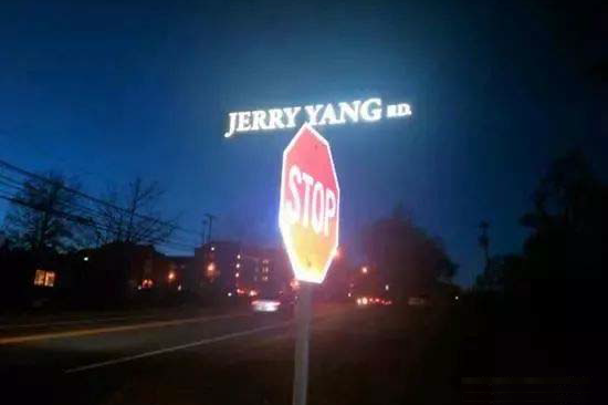 2017年11月17日上午,“楊向中路”("Jerry Yang RD",楊向中英文名字為"Jerry Yang")路牌在美國康州大學那條繁華的路邊豎起,當時多家美國和國內媒體爭相報道。