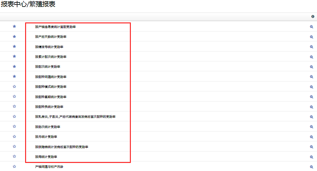 奶業(yè)之星?牧場管理信息系統(tǒng)上關(guān)于受胎率有多達(dá)14個維度的分析(如下圖),管理者可以逐一查看,從多角度進(jìn)行數(shù)據(jù)挖掘并分析原因,從而制定出最具針對性的解決方案,避免南轅北轍事倍功半。